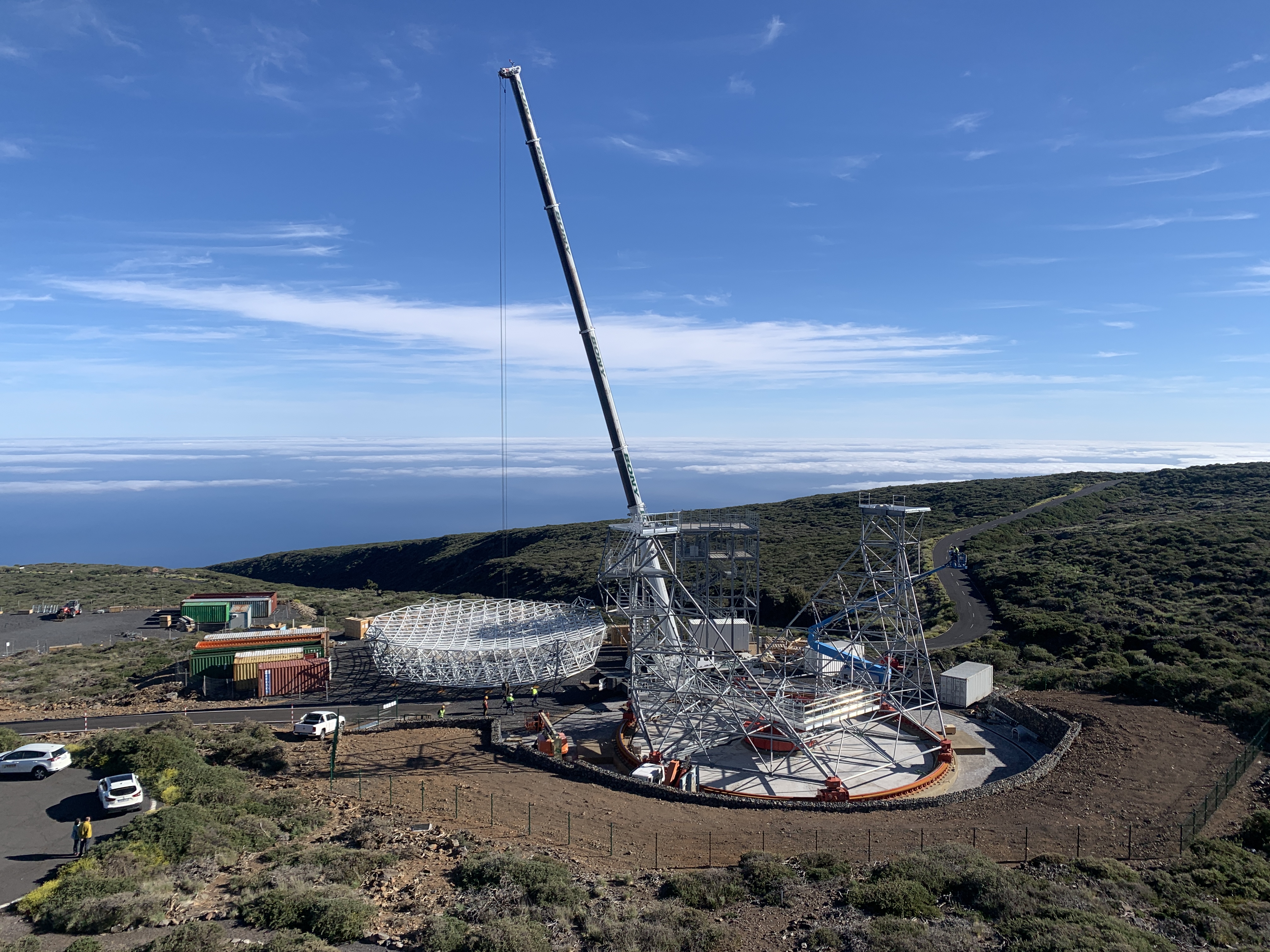 This intricate operation involved raising the dish to a height of 18 metres above the ground, where it was securely positioned with the assistance of a 200-tonne crane. The installation process presented its challenges, particularly as the large structure must be lifted and installed in a single procedure. However, thanks to the perfect weather conditions and the expertise of contractor MERO-TSK and subcontractor CaSanaTec, the operation was smoothly executed within a few hours. The telescope's elegant mechanical design is a product of a cooperation between MPP Munich, LAPP Annecy, IFAE Barcelona and several industrial partners. The construction and installation contract is being executed largely by the IAC, together with the LST Collaboration members. Concurrently, construction is progressing for the LST-2 and LST-3, alongside the LST-4, with more key milestones planned for each telescope. Construction and assembly of the upcoming LSTs remain on schedule with an expected completion by early 2026. |
